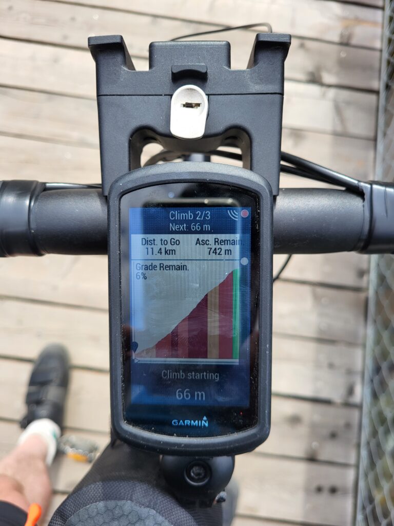 As a friendly reminder from my bike computer. The dot on the right-hand edge of the screen shows something is approaching from behind. It is the bike radar working.