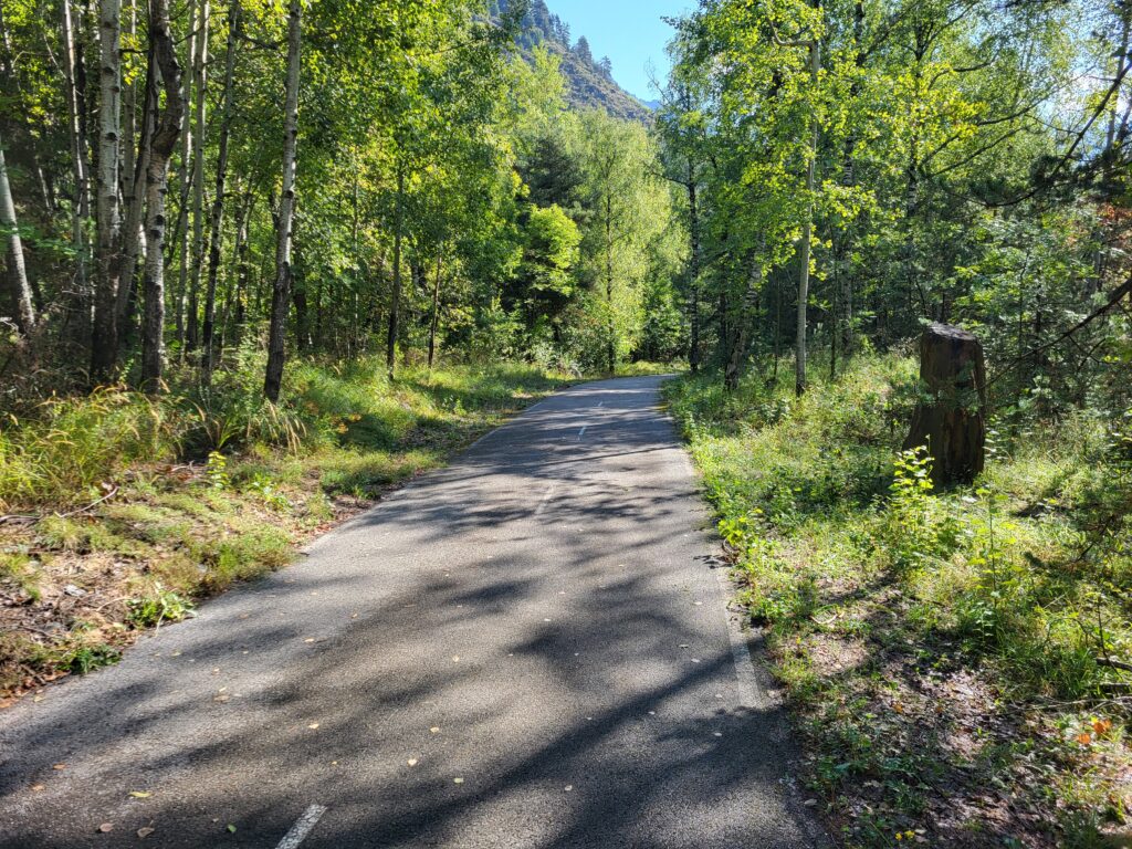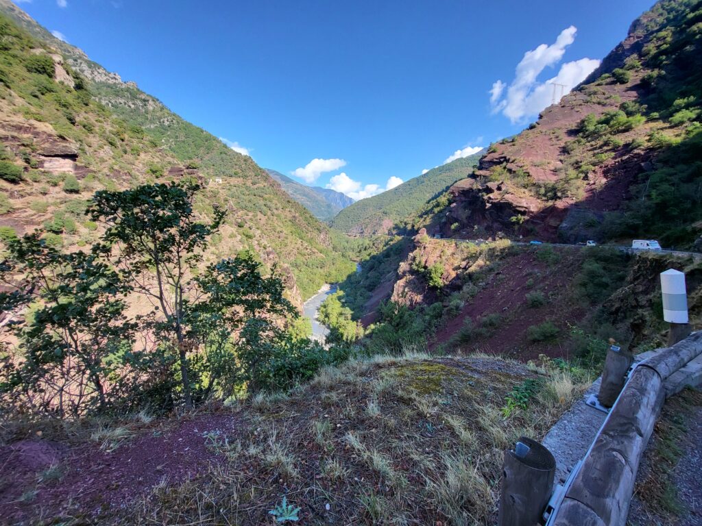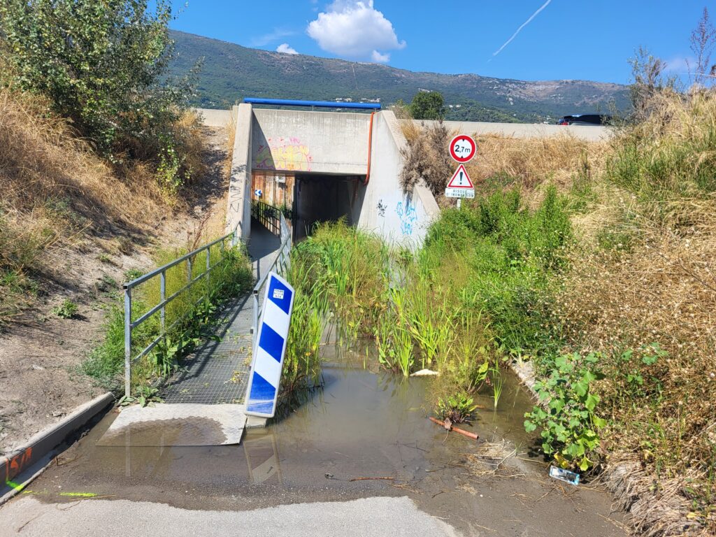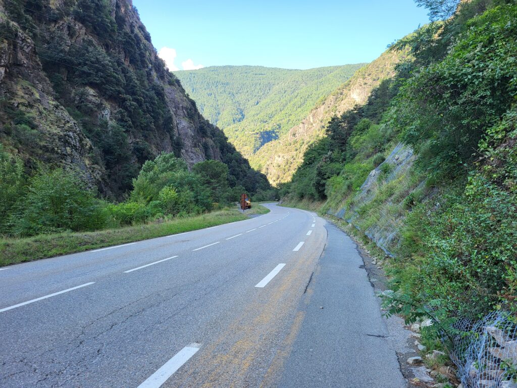 It had been raining all night so it was a cool morning. Just warm enough to drive in short sleeves. The first 5 km went down to the main road. Continuing downwards it was going swiftly forward 40km in 1h10. It was mainly on the main road but with no traffic. Occasionally there was a bike route through woods which was nice but on the other hand you have all the roots from the trees making the route bumby. A firm grip on the handlebar is necessary. After 2 hours I had done 60km and the valley widened and got flat. The last 10km before the road was busier. At 60km the bike route started on the other side of the river Var. It was wide flat but in the baking sun. This went on an on, the road getting less and less good the nearer to the coast. At the end it turned into a small side road with pebbles, garbage on the side. Back on the bike lane with a water filled underpass. Finally I arrived on the bike lane passing the airport and leading to Promenade des anglais the promenade running along the coast by Nice. A quarter to 2 pm I arrived in Nice on Place Massena.